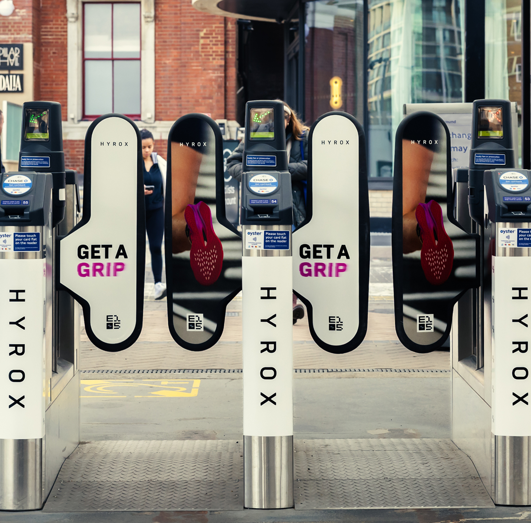 A suite of headline-driven ads delivered awareness for the EMEA Champs, the HYROX brand, its partners and products. Built around the campaign narrative The Future Favours the Fast, we told three stories: the speed of the EMEA race, the world’s fastest-growing sport, and a shared HYROX identity where everyone has their own version of fast. We pulled this off through guerrilla-style projections across iconic London landmarks – Marble Arch, Tate Modern and County Hall (1 planned, 3 delivered) – and used strategically placed ads in train stations and airports, including 40 digital screens across Gatwick and Stansted to deliver a strong HYROX brand presence across London.